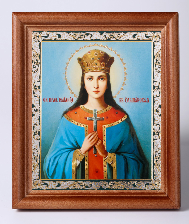 Икона в деревянной рамке 11х13 Набор с Днем Ангела, двойное тиснение Иулиания Ольшанская, прав.