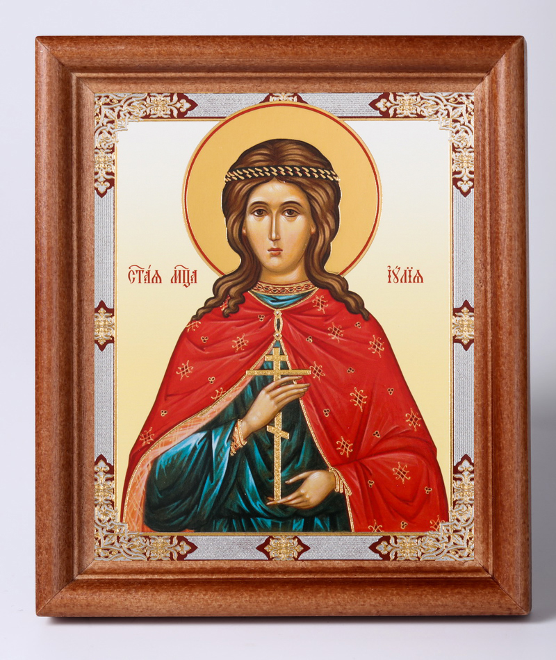 Икона в деревянной рамке 11х13 Набор с Днем Ангела, двойное тиснение Иулия Карфагенская, дева, мц. (3)