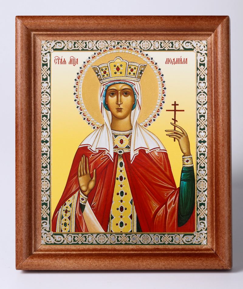 Икона в деревянной рамке 11х13 Набор с Днем Ангела, двойное тиснение Людмила Чешская, княгиня, мц. (3)