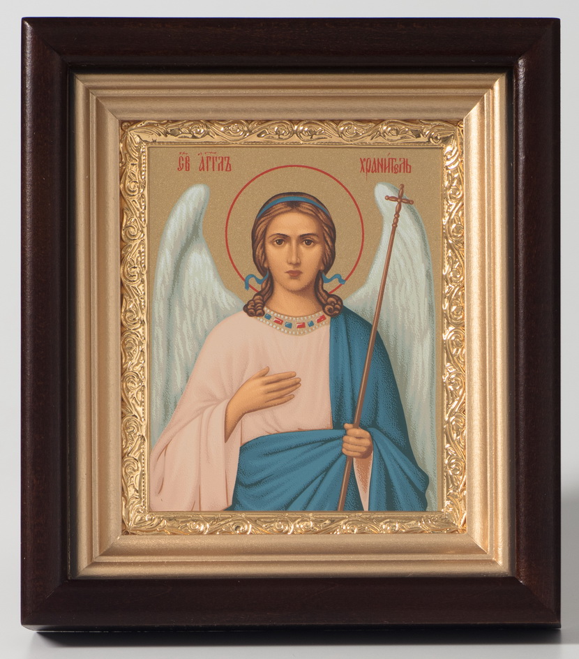 Икона в киоте 11х13 сложный, темпера, рамка золочёная Ангел Хранитель 1
