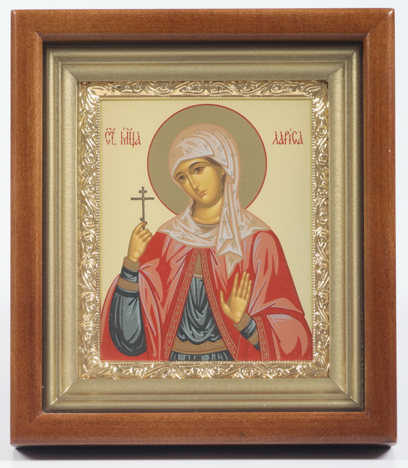 Икона в киоте 11х13 сложный, темпера, рамка золочёная Лариса
