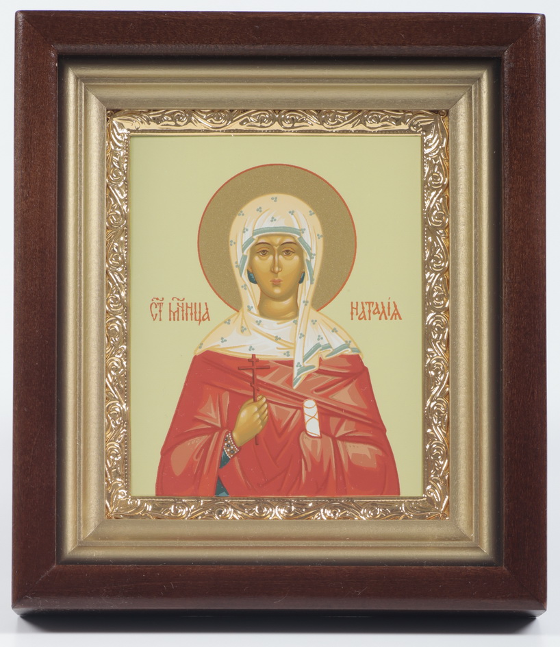 Икона в киоте 11х13 сложный, темпера, рамка золочёная Наталия