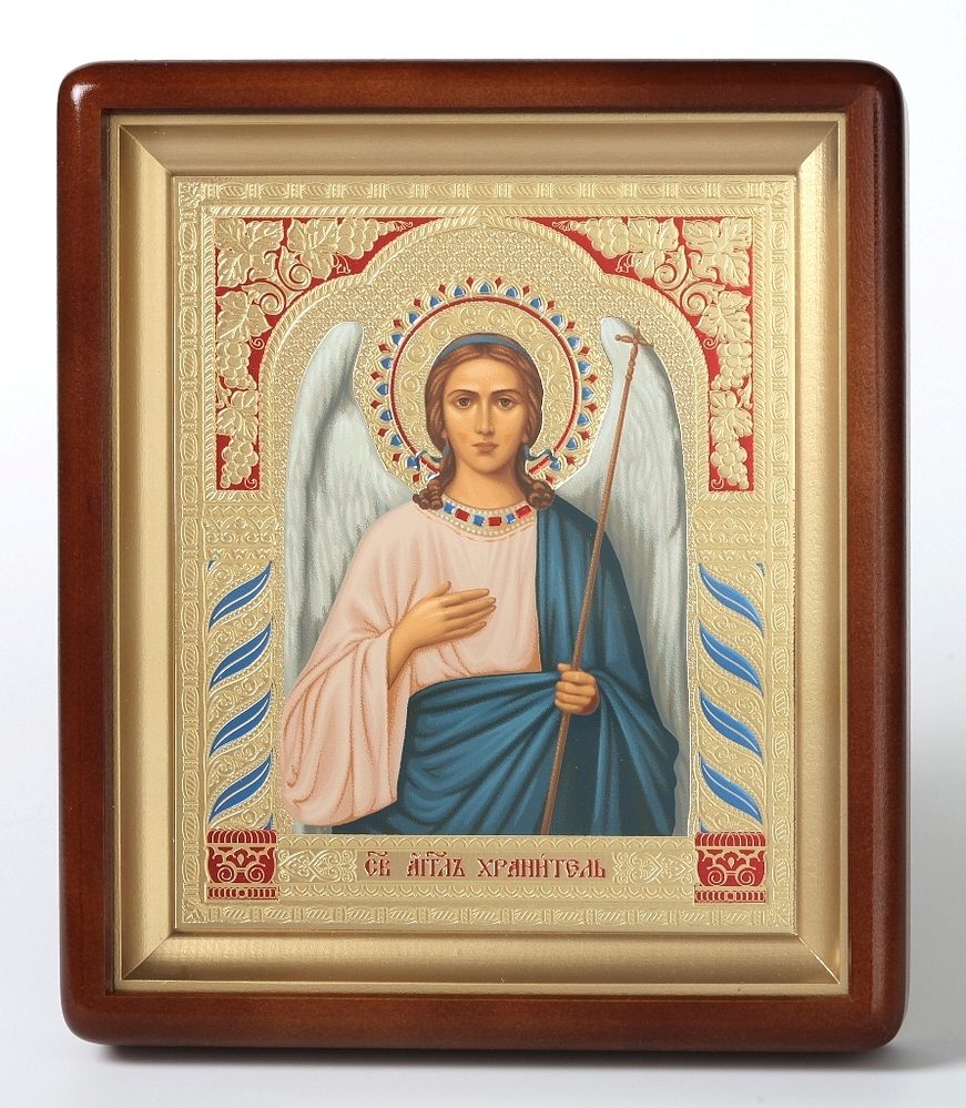 Икона в киоте 18х24 фигурный, темпера №6 Ангел-Хранитель 1 (желтый фон)