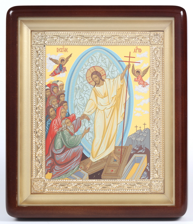 Икона в киоте 18х24 фигурный, темпера, рамка золочёная Воскресение Христово 2