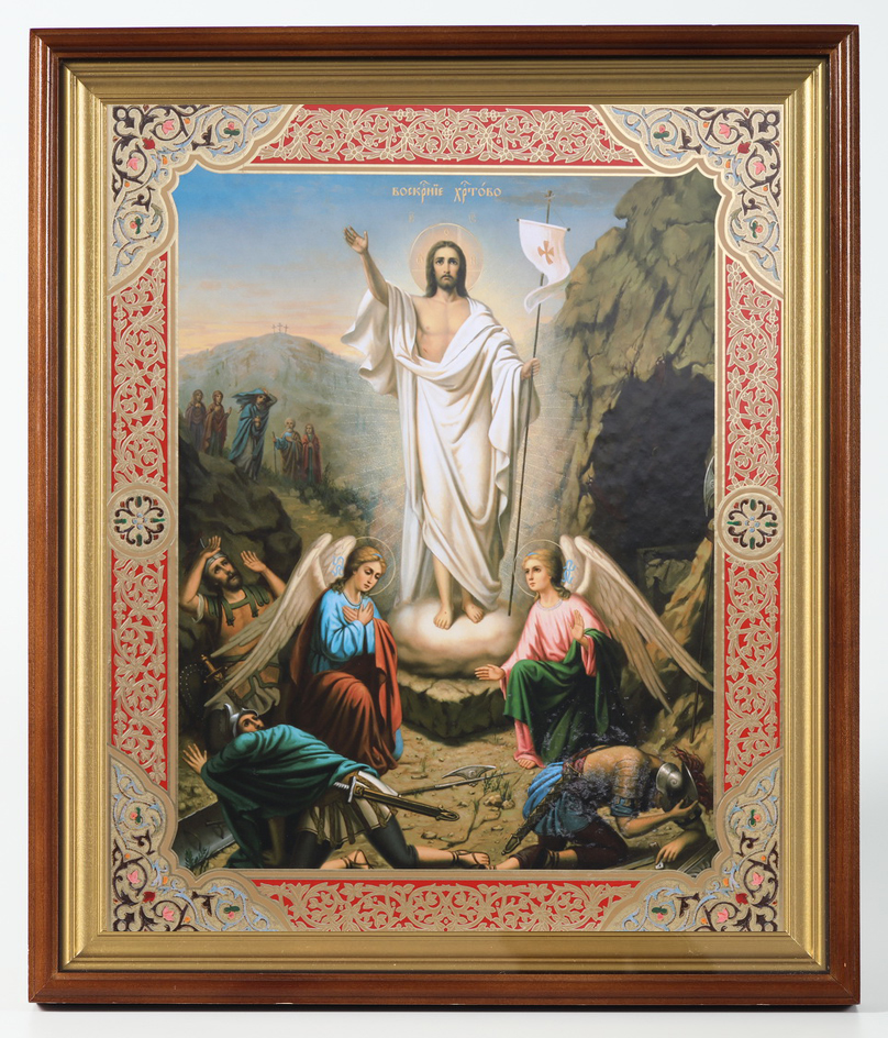 Икона в киоте 40х50 сложный, двойное тиснение Воскресение Христово 2