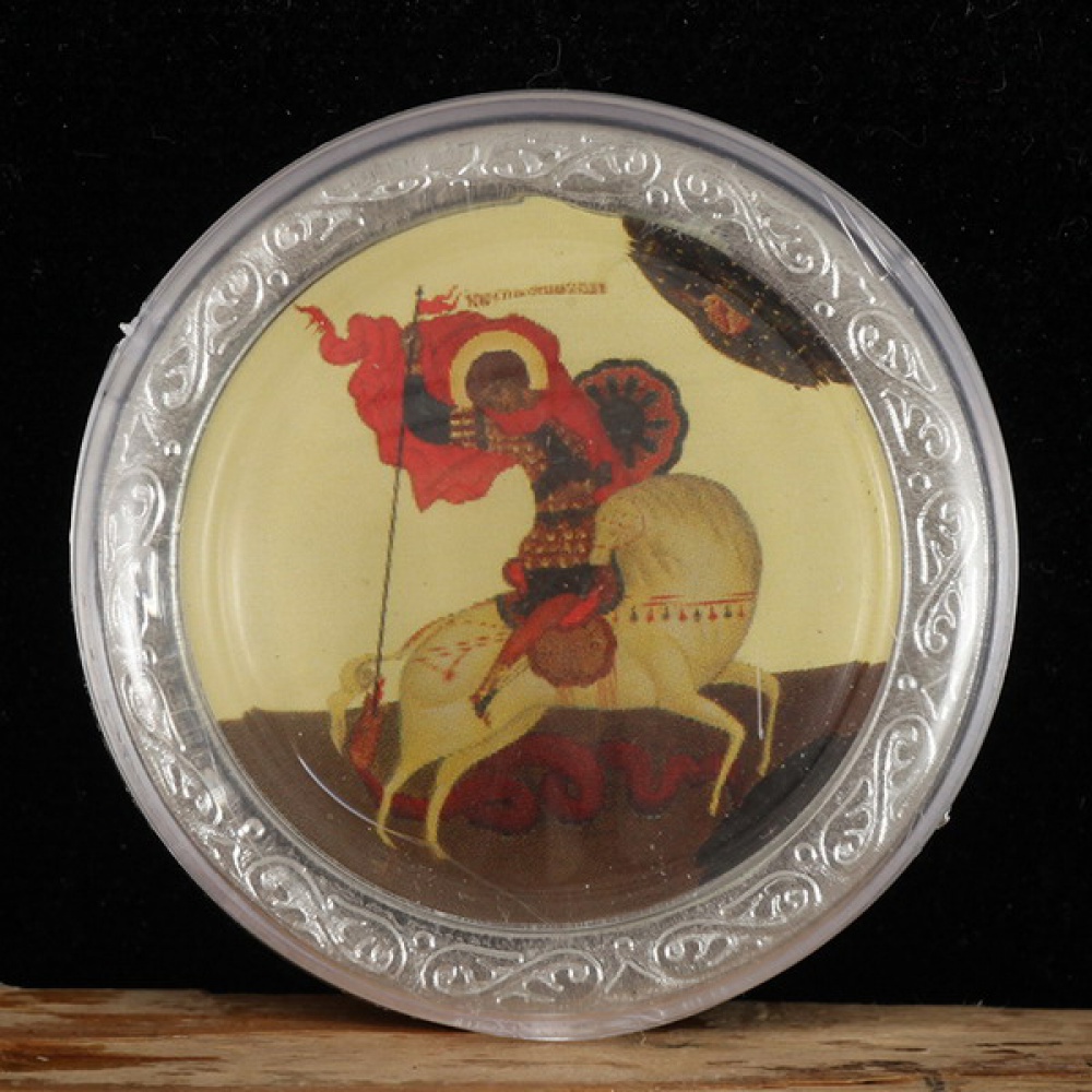 Икона в пластмассовой рамке 4х5 круглая Георгий Победоносец