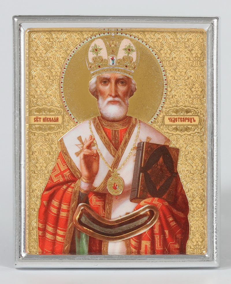 Икона в пластмассовой рамке 4х5 металлизированная Николай Чудотворец (ковчег)