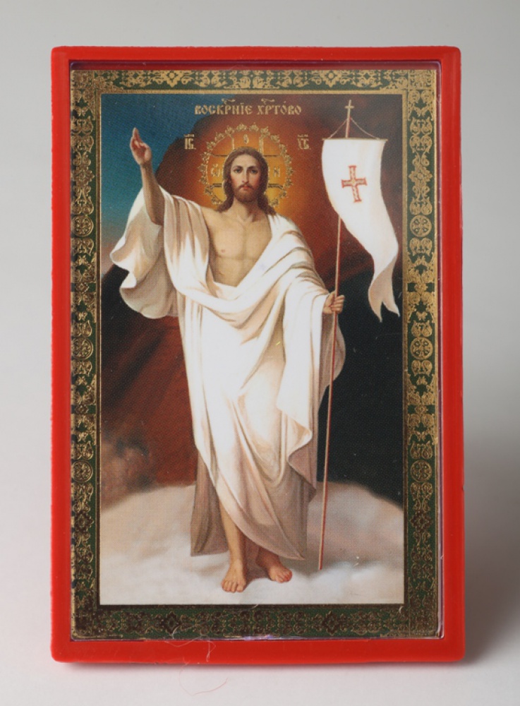 Икона в пластмассовой рамке 5х7 пластмассовая с подставкой Воскресение Христово 3