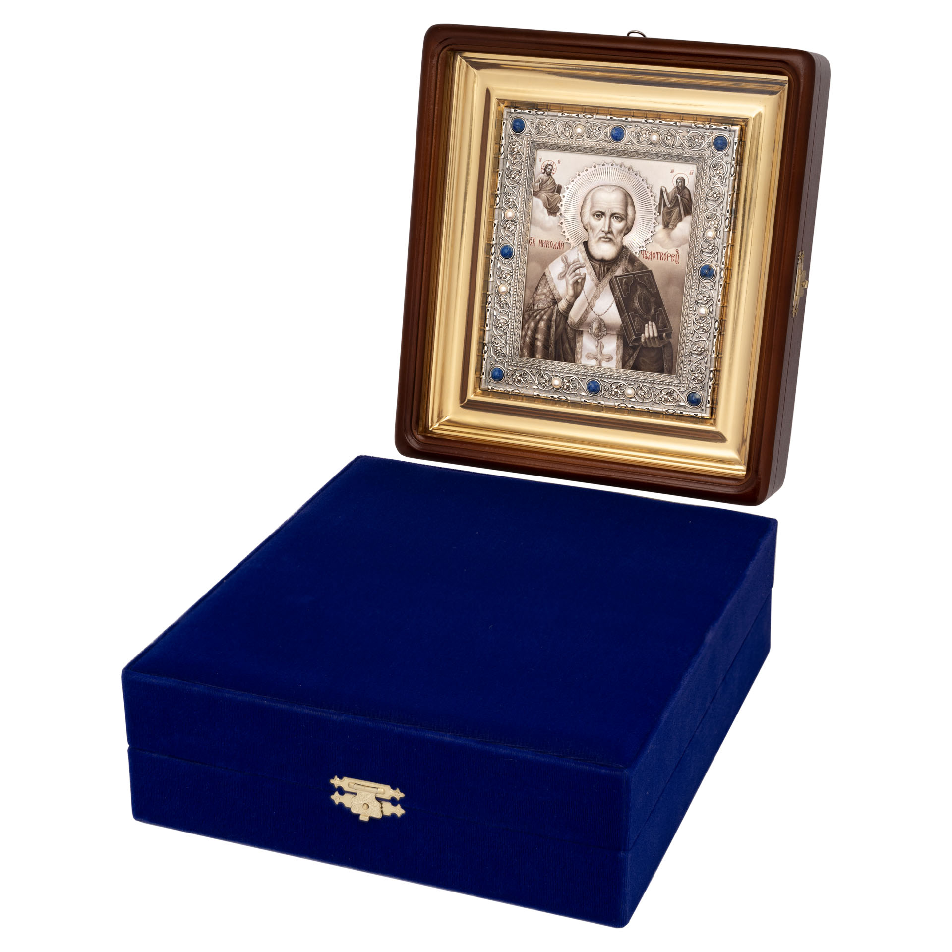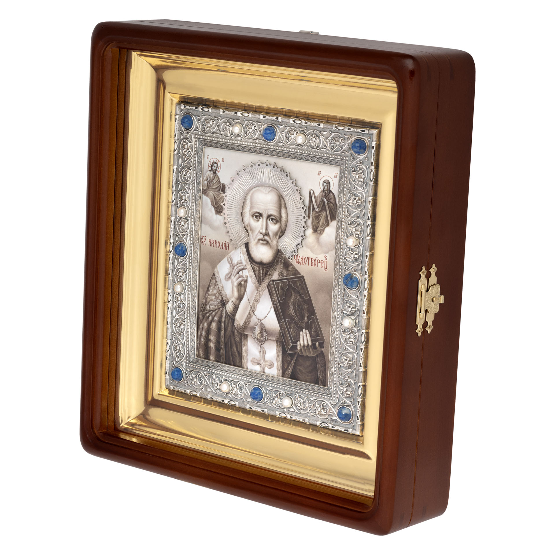 Икона в ризе 19*16,5 деколь гальванопластика / киот / серебро Николай Чудотворец (УИН)