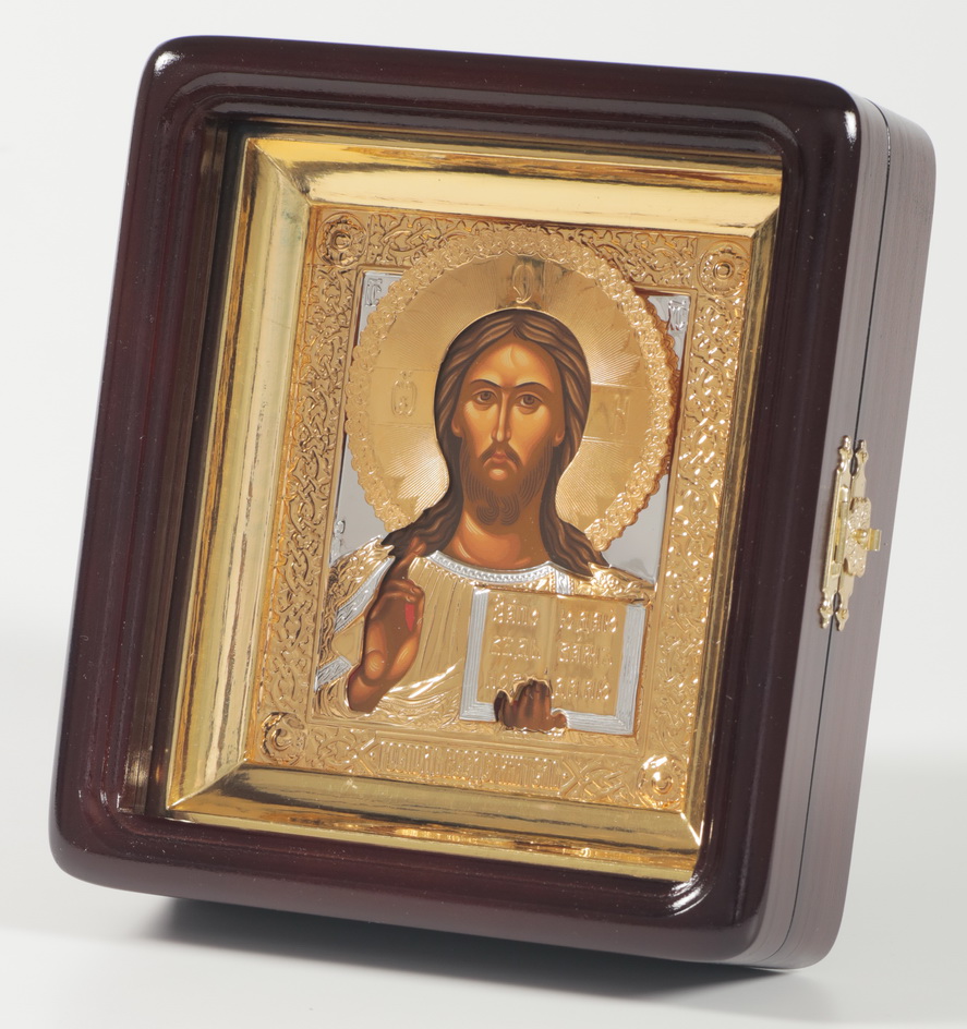Икона в штампованном окладе 11*13 серебро / киот / золочение / Господь Вседержитель (УИН)