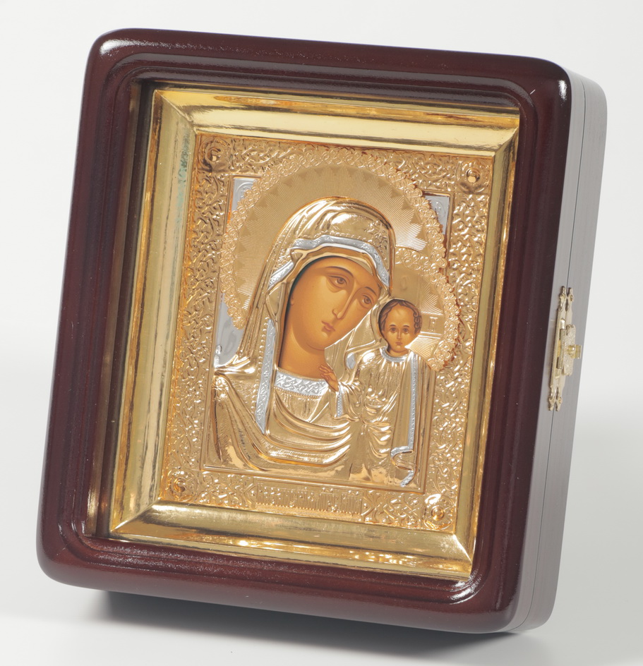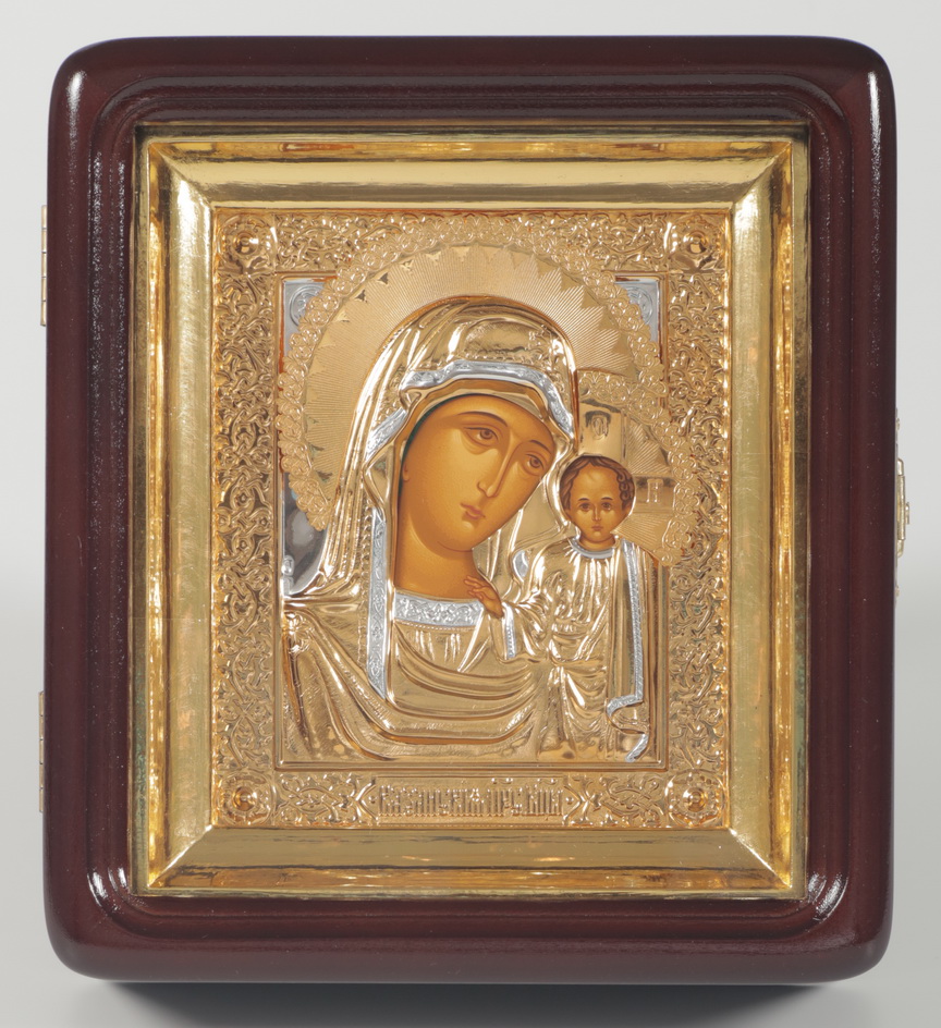 Икона в штампованном окладе 11*13 серебро / киот / золочение / Казанская БМ (УИН)