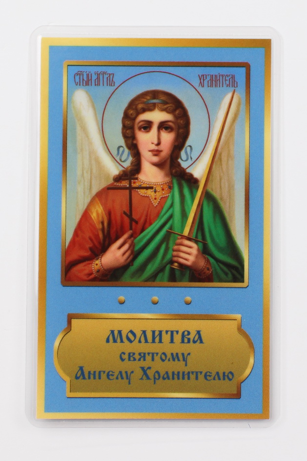 Икона в жесткой ламинации 5х8 с оборотом Ангел-Хранитель (поясной)