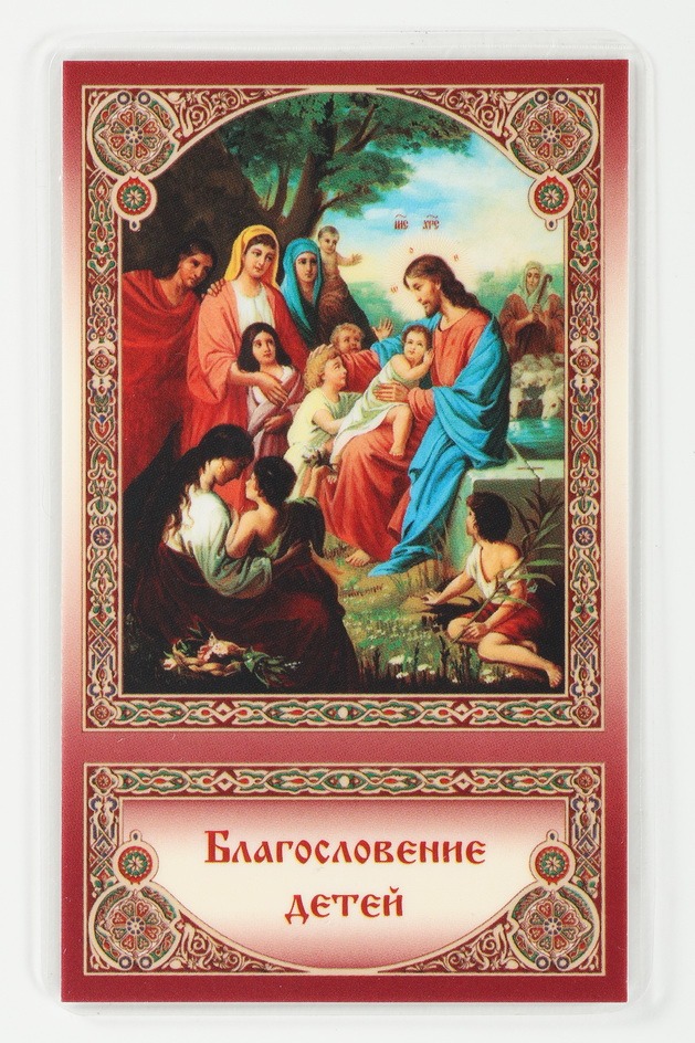Икона в жесткой ламинации 5х8 с оборотом Благословение детей