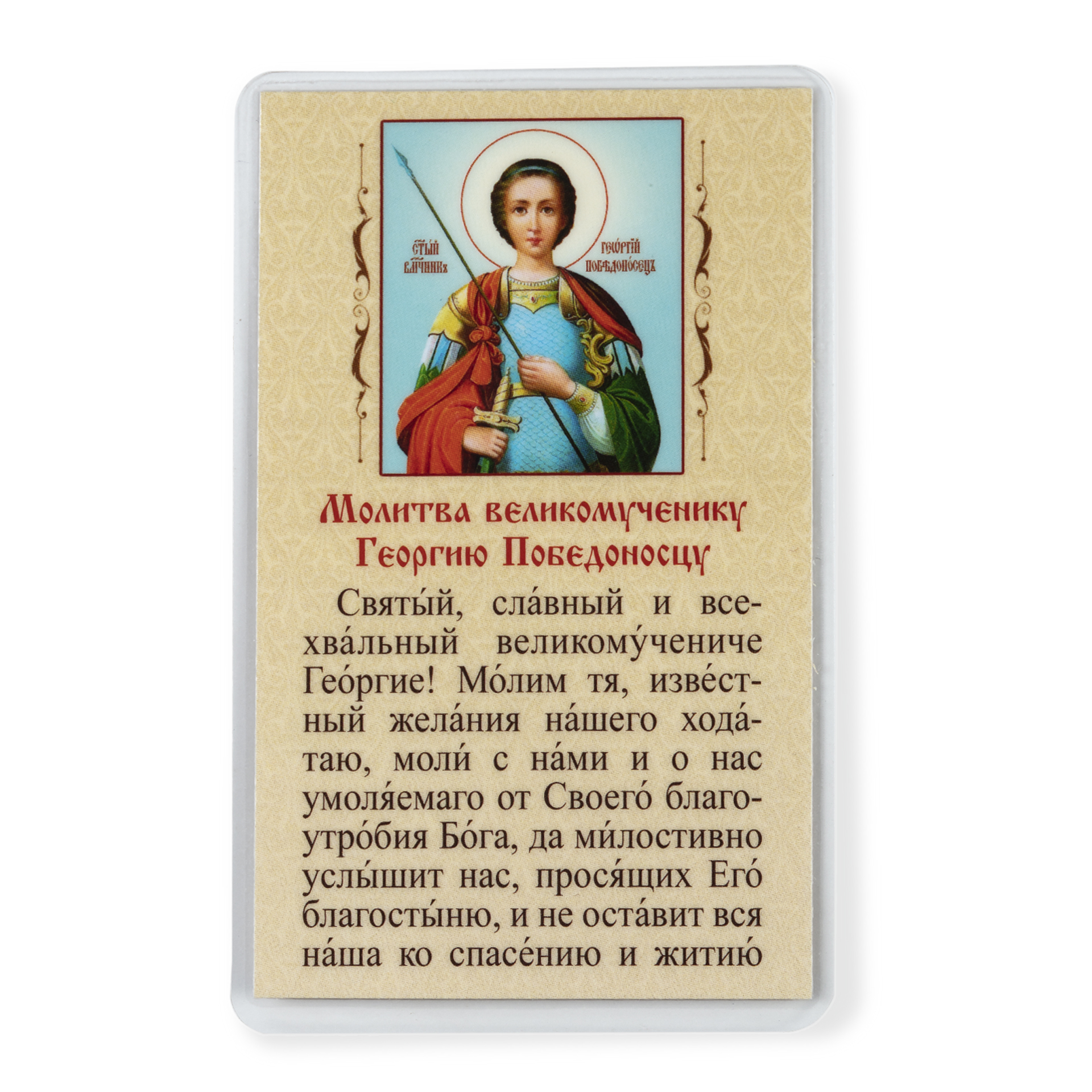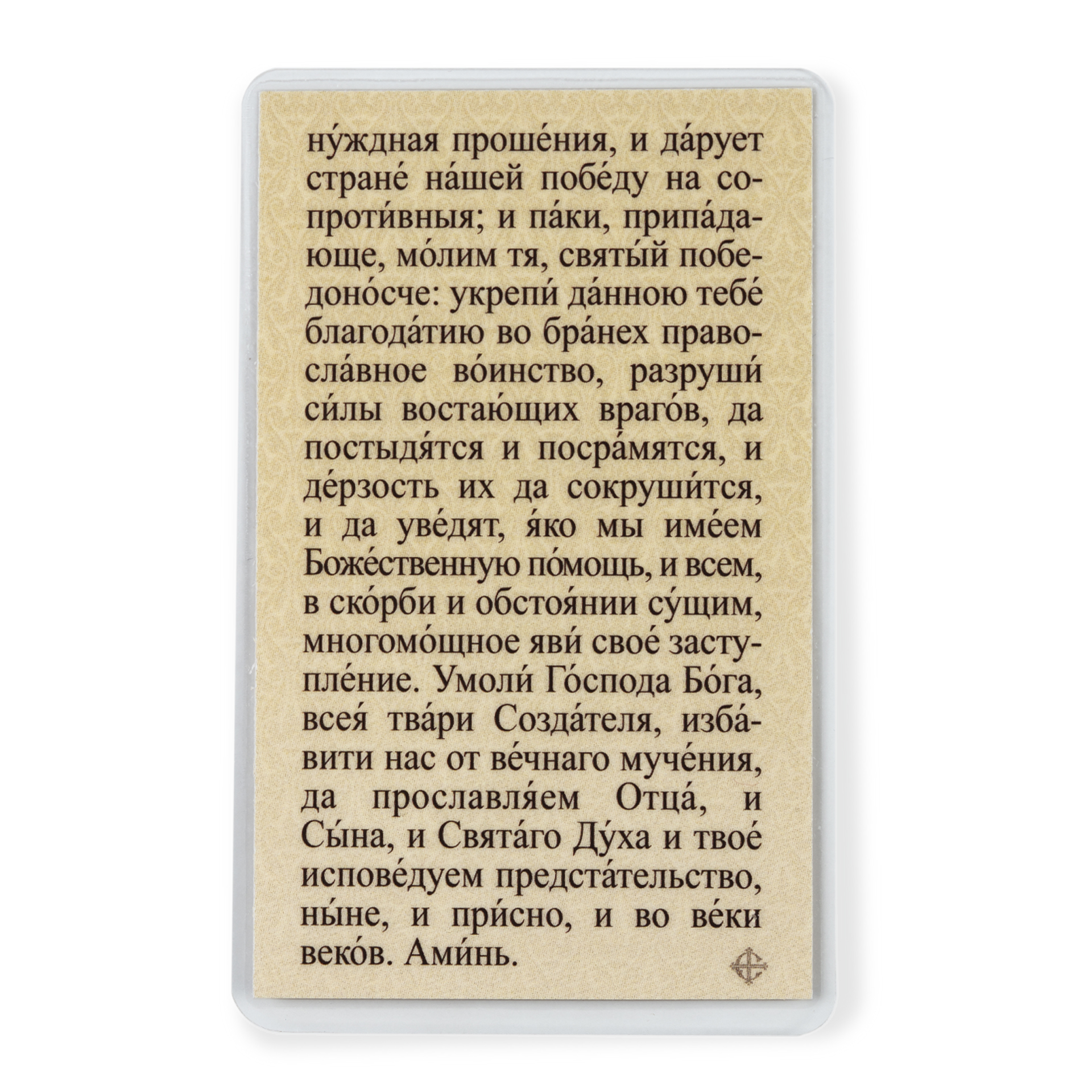 Икона в жесткой ламинации 5х8 с оборотом Георгий Победоносец 2