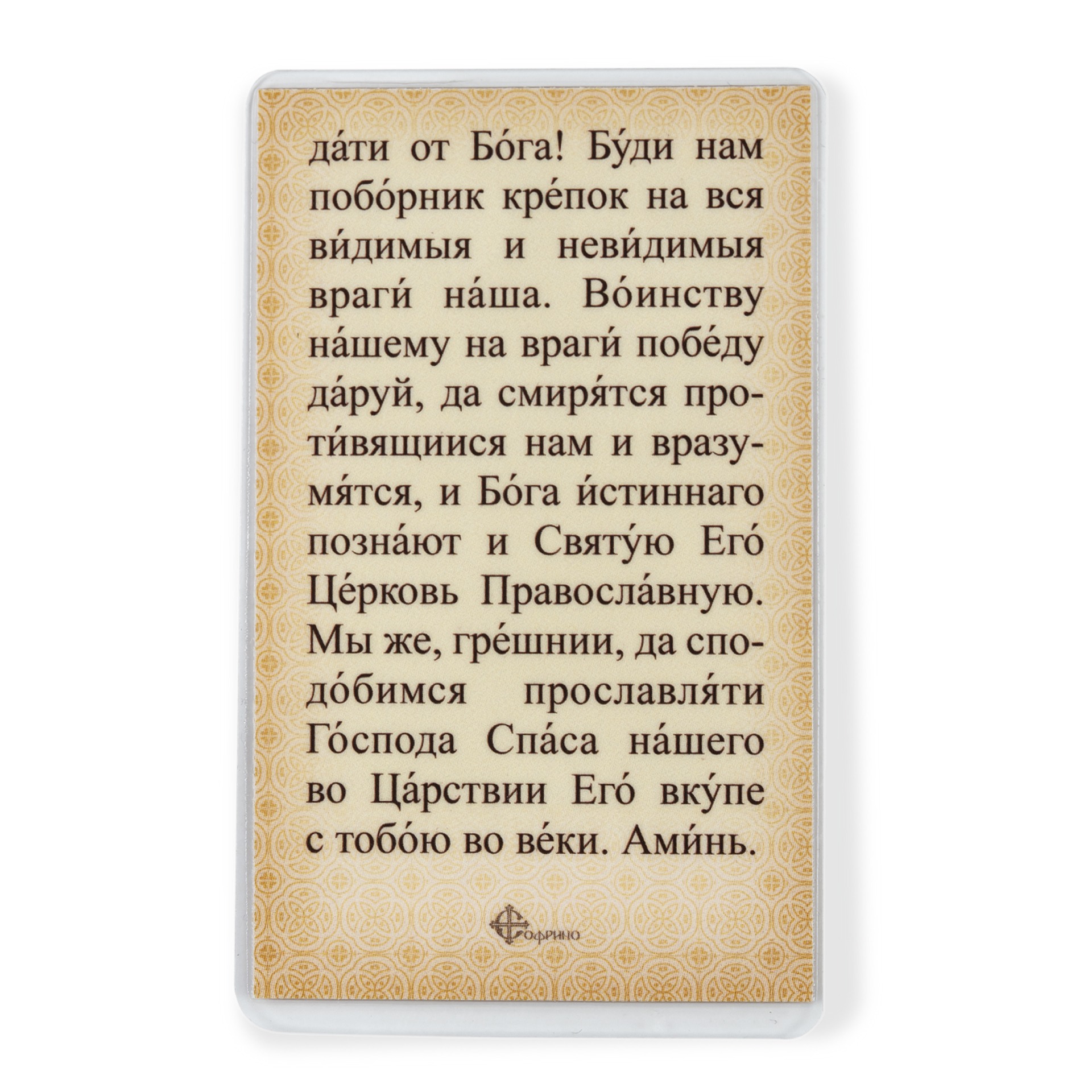 Икона в жесткой ламинации 5х8 с оборотом Иоанн Воин