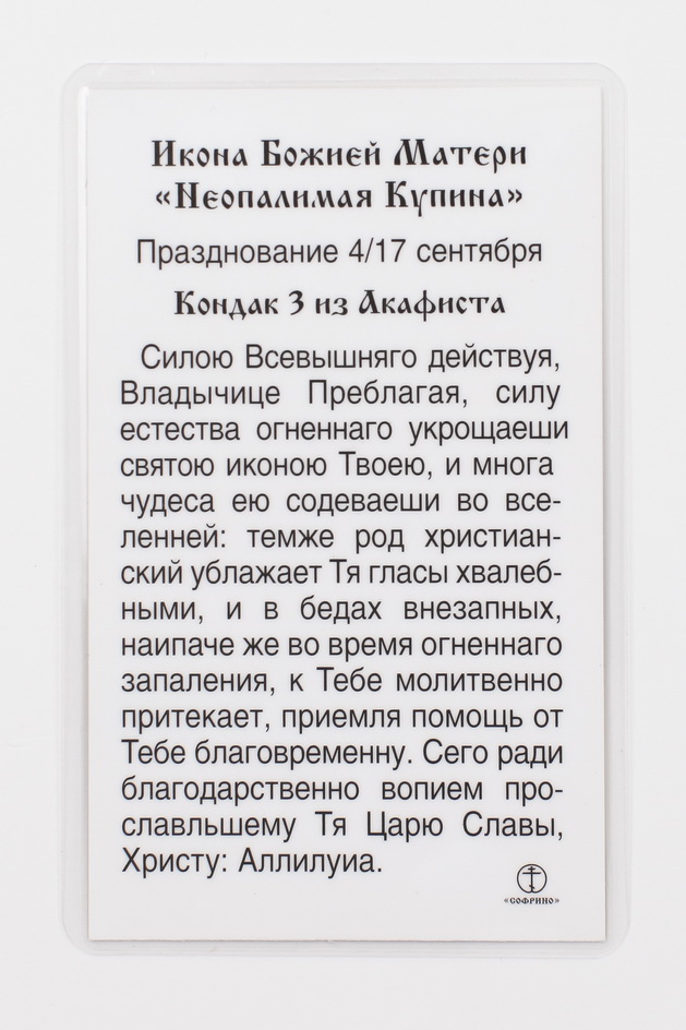 Икона в жесткой ламинации 5х8 с оборотом Неопалимая Купина
