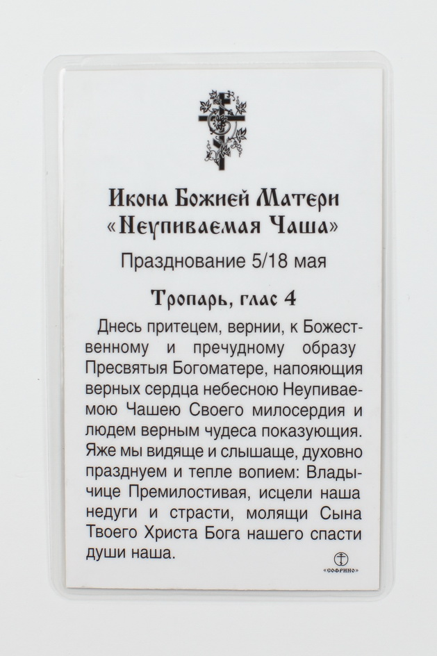 Икона в жесткой ламинации 5х8 с оборотом Неупиваемая Чаша