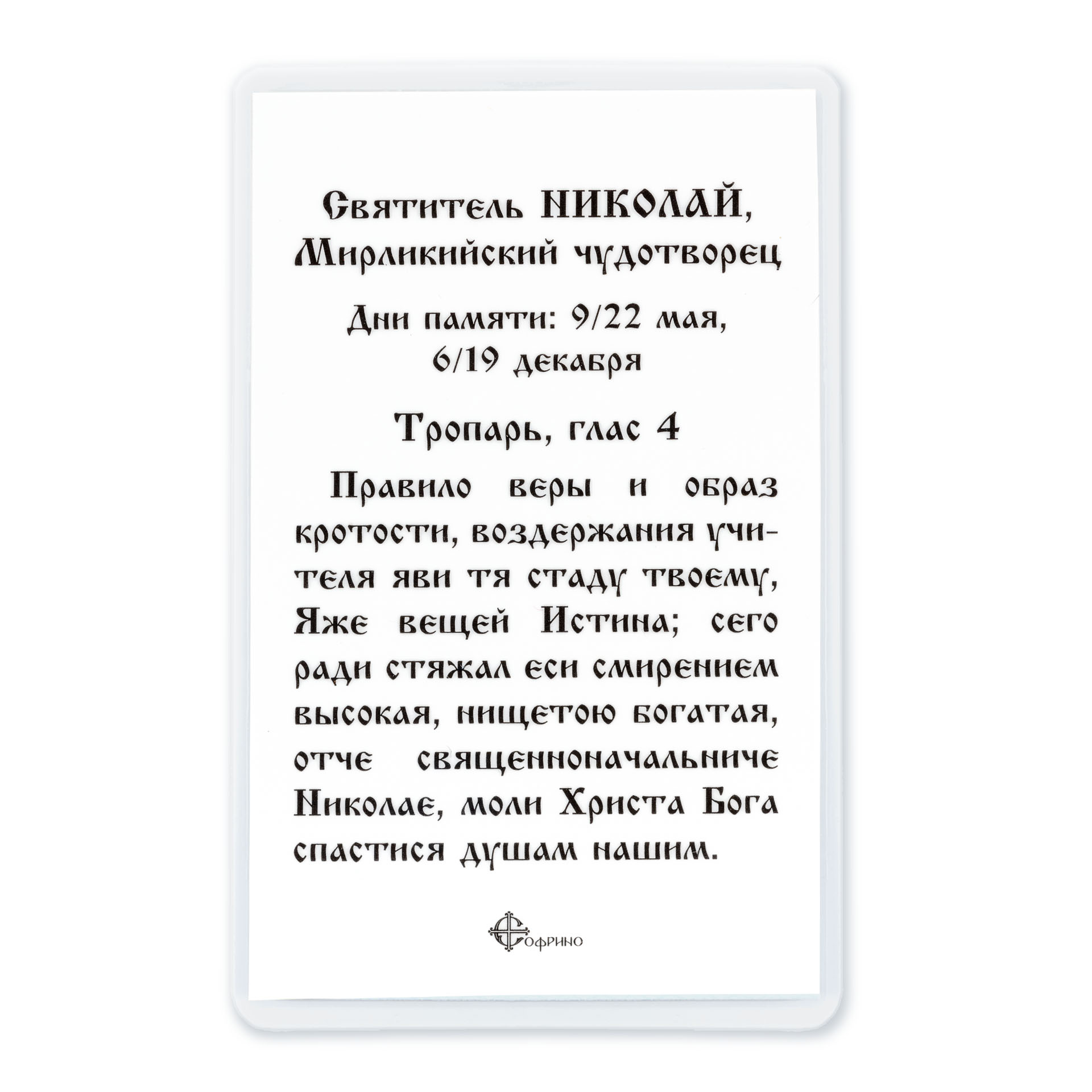 Икона в жесткой ламинации 5х8 с оборотом Николай Чудотворец (ростовой)