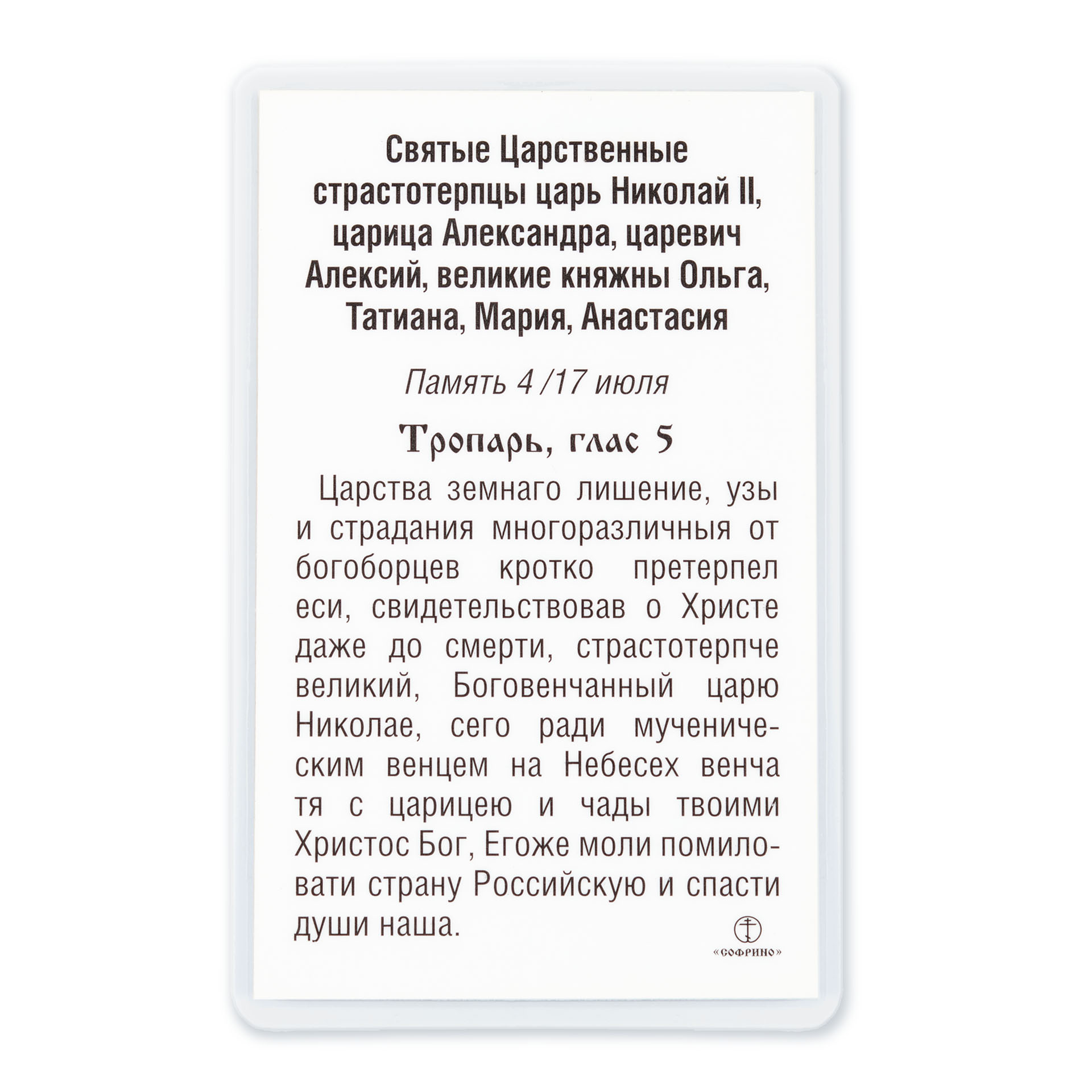 Икона в жесткой ламинации 5х8 с оборотом Царская семья