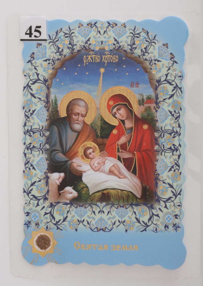 Икона в жесткой ламинации 8х11 с оборотом, тиснение, высечка, частица земли Рождество Христово 45