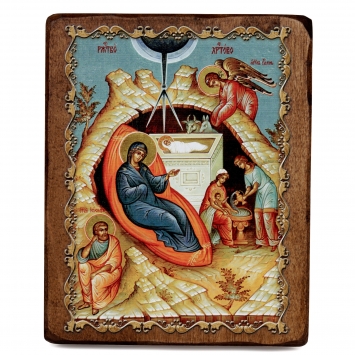 Икона на доске 12,5х16,5 объёмная печать, лак Рождество Христово 5