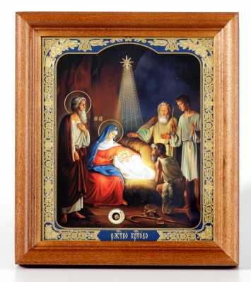 Икона в деревянной рамке №1 11х13 двойное тиснение Рождество Христово 4
