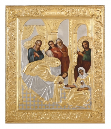 Икона живописная в киоте 60х70 масло, риза №186, киот №1 Рождество Богородицы
