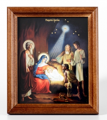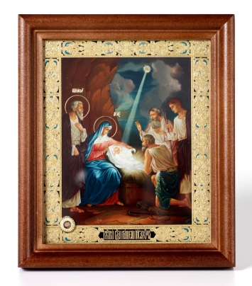 Икона в деревянной рамке №1 11х13 двойное тиснение Рождество Христово 45