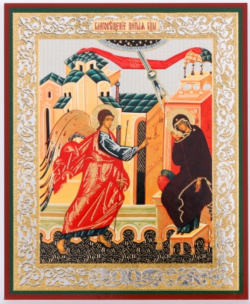 Икона на деревянном планшете 30х40 двойное тиснение, ДСП, ПВХ Благовещение 2