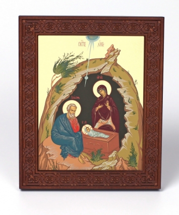 Икона на дереве 18х22 прокат, ковчег с резным обрамлением, упаковка Рождество Христово 3