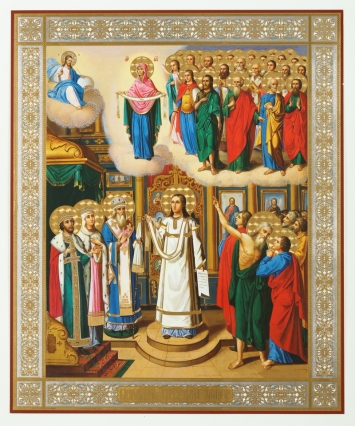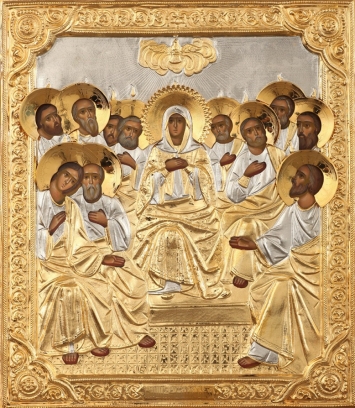 Икона живописная в киоте 30х40 масло, риза №294, киот №1 Сошествие Святого Духа