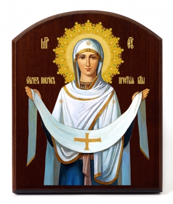 Икона на доске 10х12 объёмная печать, арочная, лак Покров (поясной)