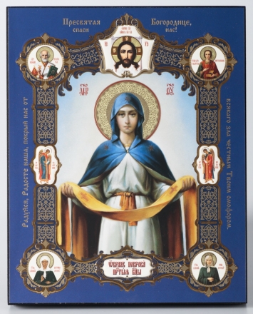Икона на деревянном планшете 13х18 конгрев, плёнка (18мм) Покров (с клеймами)