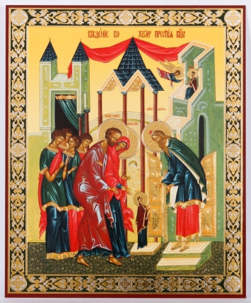 Икона на деревянном планшете 30х40 двойное тиснение, ДСП, ПВХ Введение во храм Пресвятой Богородицы 2
