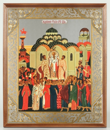 Икона в деревянной рамке №1 18х24 двойное тиснение Вход в Иерусалим