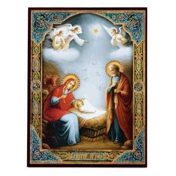 Икона на доске 30х40 объемная печать, лак №2 Рождество Христово