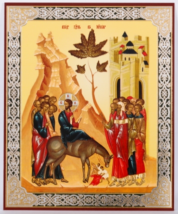 Икона на доске 22х26 объёмная печать, лак Вход в Иерусалим,