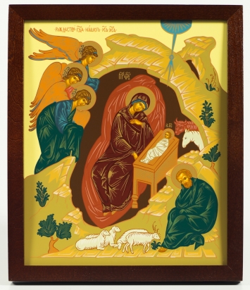 Икона в киоте 18х24 фигурный №2 темпера, без подрамника Рождество Христово 1