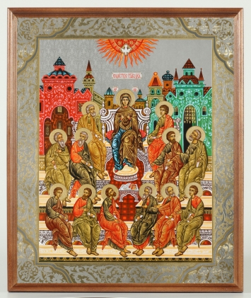 Икона в деревянной рамке №1 30х40 двойное тиснение, упаковка Сошествие Святого Духа