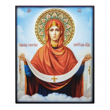 Икона на доске 13х15 объёмная печать, лак Покров БМ 5