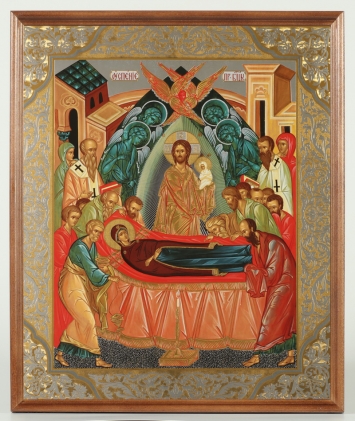 Икона в деревянной рамке №1 18х24 двойное тиснение Успение Богородицы 2
