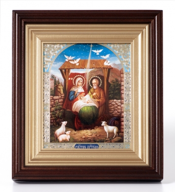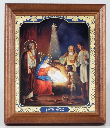 Икона в деревянной рамке №1 11х13 двойное тиснение Рождество Христово 21