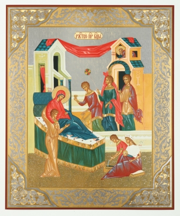 Икона на деревянном планшете 30х40 двойное тиснение, ДСП, ПВХ Рождество Богородицы 2