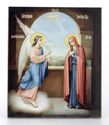 Икона на доске 22х26 объёмная печать, лак Благовещение,
