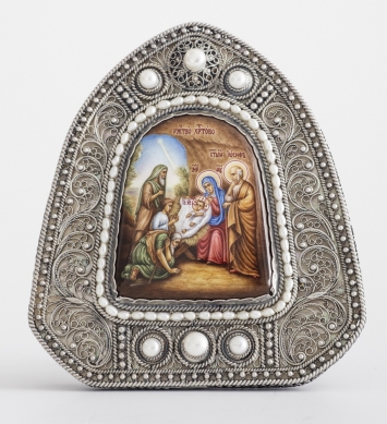 Икона настольная №6 деколь / серебрение / Рождество Христово 2