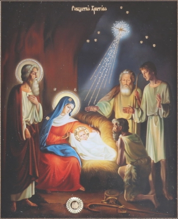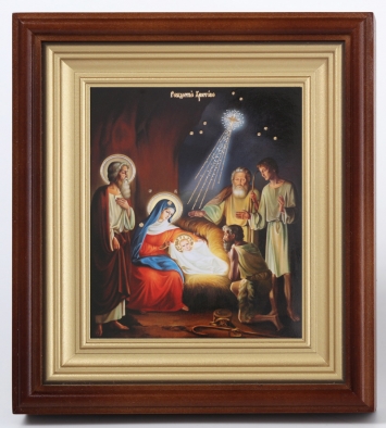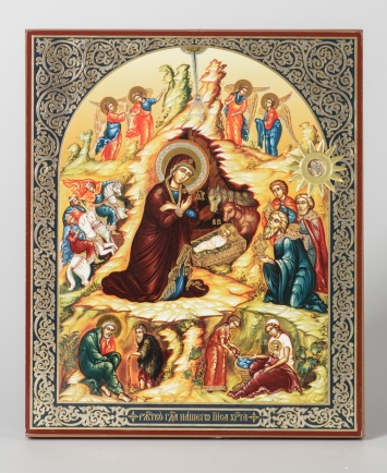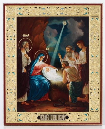 Икона на доске 30х40 объемная печать, лак №2 Рождество Христово