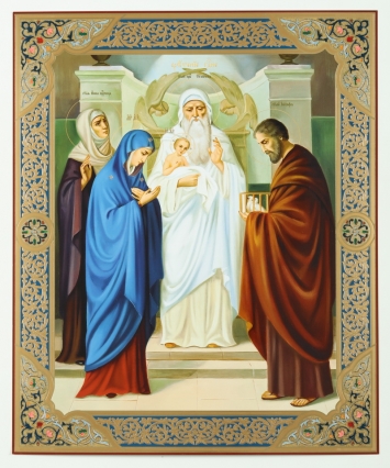 Икона на деревянном планшете 30х40 двойное тиснение, ДСП, ПВХ Сретение Господне 2