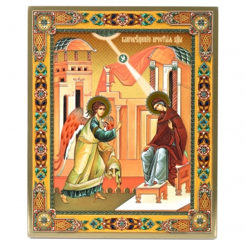 Икона на доске 18х24 золоченое покрытие, объёмная печать, лак Благовещение,