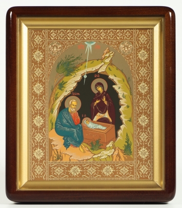 Икона в киоте 11х13 сложный, двойное тиснение Рождество Христово 4