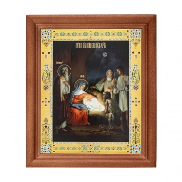 Икона в киоте 18х24 фигурный, темпера №9 Рождество Христово 2